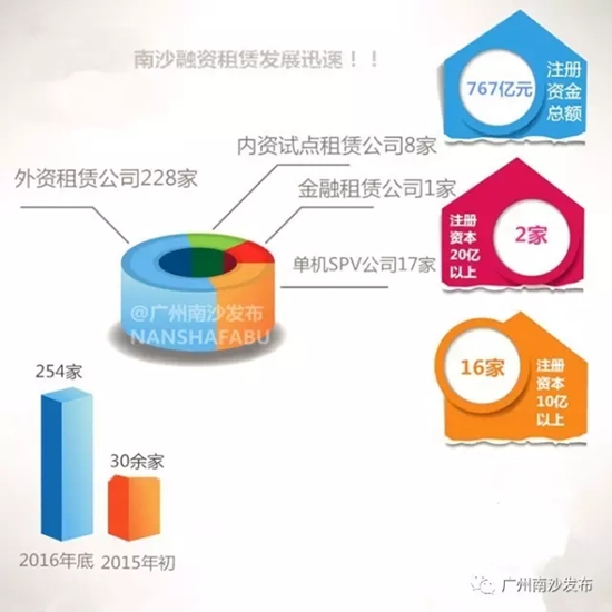 南沙融資租賃業(yè)發(fā)展迅速,建設華南地區(qū)融資租賃聚集中心開局良好。2016年,南沙融資租賃工作組在開發(fā)區(qū)管委會和金融工作局的領導下,依托新區(qū)、自貿區(qū)“雙區(qū)”疊加優(yōu)勢,大力推動融資租賃業(yè),積極探索融資租賃創(chuàng)新,致力于打造華南地區(qū)融資租賃集聚中心和中國融資租賃第三級,取得了初步成效。